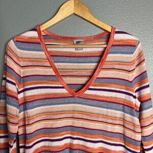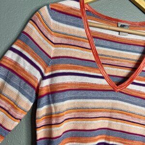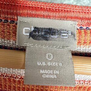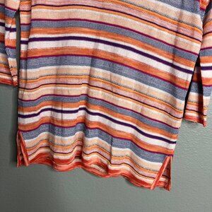 NEW Chico's Loose Knit Striped V-Neck Split Hem Tunic Top 3/4 Sleeve Small