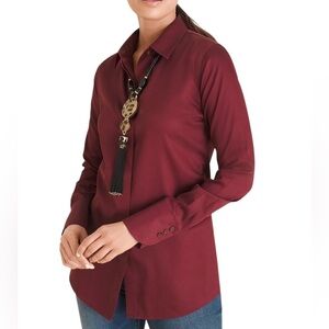 NEW Chico’s No Iron Sateen Long Sleeve Button Up Shirt Size U.S Size 12/14