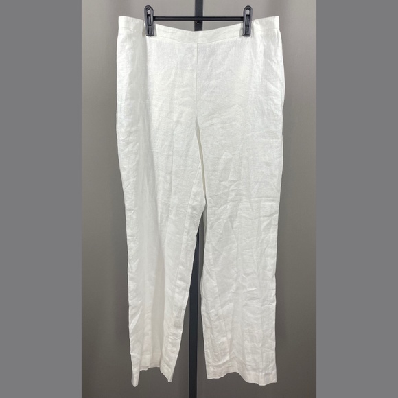 NEW Chicos Pants Womens Small white linen wide leg pull on casual classic