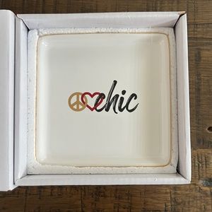 NEW! Chico's Peace Love Chic Trinket Jewelry Tray 4.5" x 4.5" Ceramic
