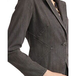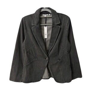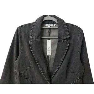 NEW Chicos Size 1 Womens Medium Charcoal Seam Detail Fitted Denim Blazer Jacket