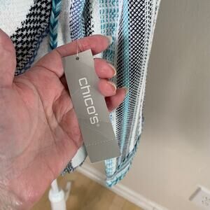 NEW Chico's Size 2 US L Cotton Sweater Jacket 3/4 Sleeve Lightweight Blue White