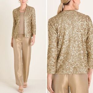NEW Chico's gold Sequin long-sleeve open front Jacket blazer, 0 (S/4)