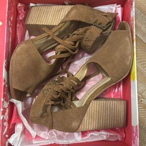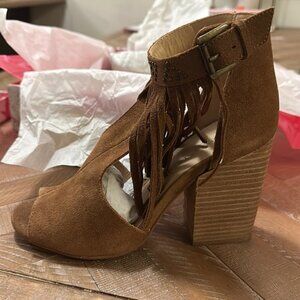 NEW Chinese Laundry Boho Style Split Suede Block Heel Peep Toe Ankle Boot Sandal
