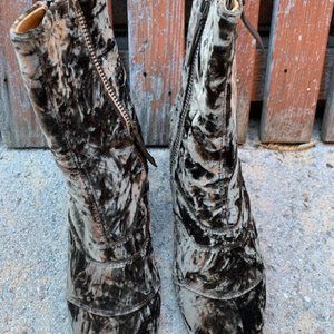 Mid-calf crushed velvet boots