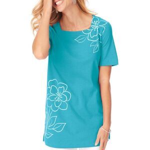 NEW Choose Sz Casual or Dress Bright Blue Square Neck Soft Tunic Shirt BLAIR