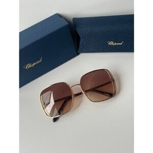 NEW Chopard SCHG33S Gold Brown Square Sunglasses $1400