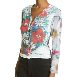 NEW Chopova Lowena Floral Daisy Mesh Button Top Small