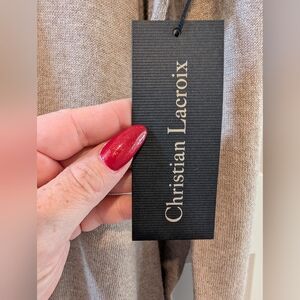 Stay stylish and comfortable with this beige men's sweater featuring a convenient half-zip design. Perfect for layering in cooler weather. Made with Pima Cotton, Nylon, Silk, and Cashmere. New with Tags. Christian LaCroix attire is known for luxury products that are high quality!