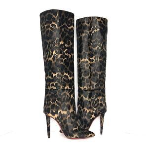 NEW Christian Louboutin Astrilarge Botta 100 Leopard Print Pointed Toe Boots 38