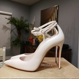 NEW Christian Louboutin Conclusive Pump in Crème Leather 100mm Heel Size 40.5