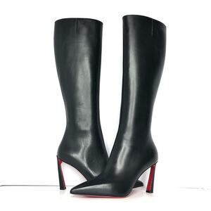 NEW Christian Louboutin Condora Botta 85 Knee High Black Pointed Toe Boots 37.5