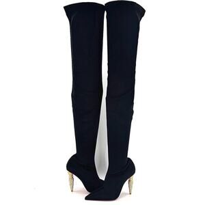 Christian Louboutin Lipstrass Botta Alta Crystal Embellished Thigh High Boots