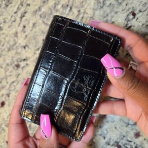 NEW Christian Louboutin Loubeka Croc Embossed Patent Leather Business Card Case