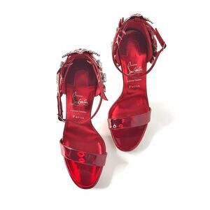 Chritian Louboutin Loubi Vega Red 120 Crystal Embellished Limited Edition Strappy Sandals