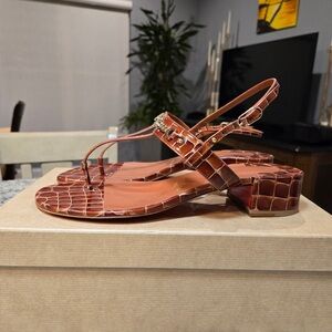 NEW Christian Louboutin MJ Thong Tan T-Strap Sandals Croc Embossed Size 38.5