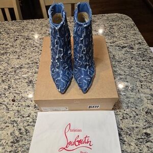NEW Christian Louboutin So Kate Booty Toile Denim Brode 100mm Size 37