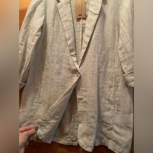 NEW Christian Siriano Jacket White Striped 100% Linen Roll Tab One Button Small