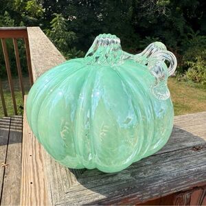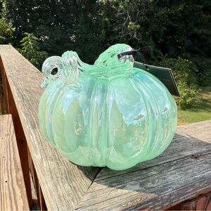 NEW Christian Siriano Mint Green Handblown Glass Pumpkin Art 6”