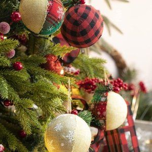 NEW Christmas Burlap Farmhouse Christmas Ornaments NWT 12 pcs
