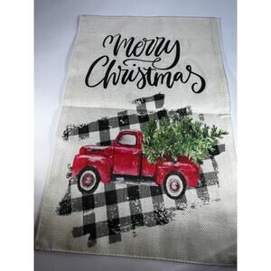 NEW Christmas Garden Yard Flag Buffalo Plaid Red Old Truck Canvas Double Sided
