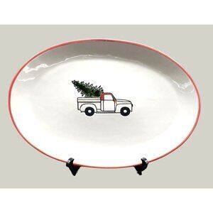 NEW Christmas Serving Platter Plate White Truck Christmas Tree Winter Wonder NWT