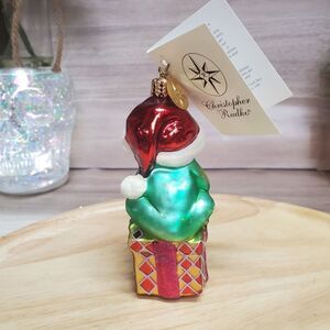 This beautiful Christopher Radko Ribbits and Bows Ornament is a must-have for any frog or Christmas ornament collector. The small size and intricate details make it a perfect addition to any holiday decor. The ornament is an original, artist-designed piece that is hand-painted with precision.
