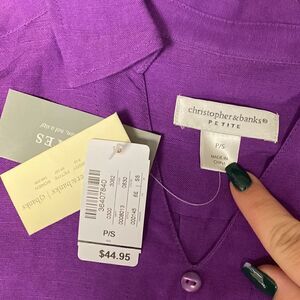 NEW Christopher & Banks Linen Blend Purple V-Neck Long Sleeve Top
