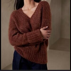 New with tags, cozy Banana Republic Melli Alpaca Blend V-neck sweater in Deep Copper. Women's size large. This retailed for $189. From the holiday collection in 2022. This sweater is so gorgeous, thick, and soft.