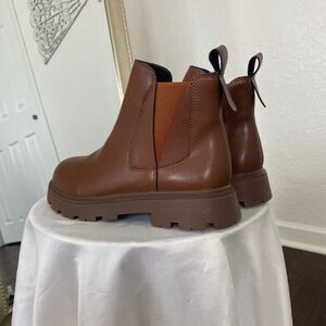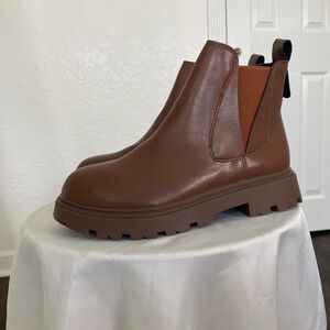 NEW Chunky Brown Lug Sole Structured Chelsea Ankle Boots EU 39 / US 8.5