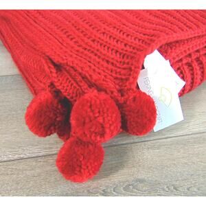 NEW Chunky Cable Knit POM POM THROW BLANKET Red 50x60" Cozy by Peking Handicraft