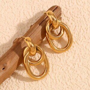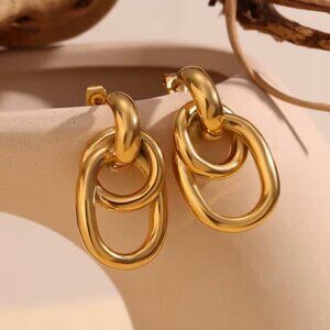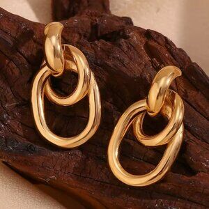 NEW Chunky Geometric Drop Earrings 18K Gold Plated Minimalist Statement