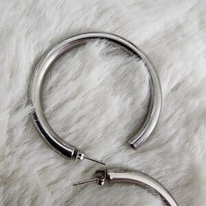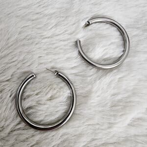 NEW Chunky Tube Hoop Earrings - Silver Rhodium Plated 2-Inch Statement Hoops