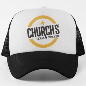 NEW Church's Texas Chicken Foam Trucker Mesh Snapback Hat 2TONE BLACK WHITE