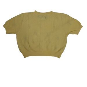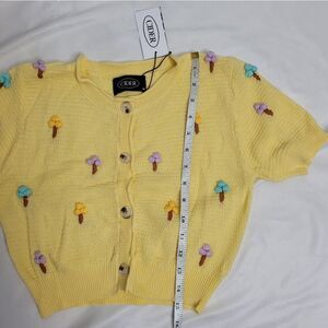 Cider yellow cropped butyon front cardigan with 3D flowers. Please refer to measurements, marked S. Nylon cotton.