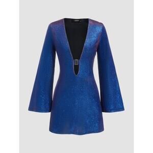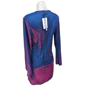 NEW Cider Blue Purple Iridescent Sequin Metallic Glitter Long Sleeve Mini Dress