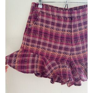 Cinq a Sept Lexie Box Weave Ruffle Shorts in Pink Candy Multicolor with tweed design