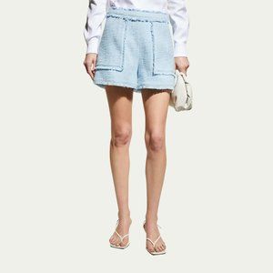Cinq à Sept "Allen" boucle-knit shorts with frayed trim.