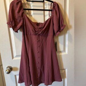 NEW City Studio Sweetheart Neckline Puff Sleeve Mini Dress NWT in Mauve SZ M LG