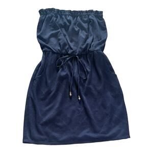 NEW City Triangles Tube Top Mini DRESS Blue Mesh & Lined Elastic Waist With Ties Size MEDIUM Juniors- NEW With Tags!