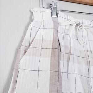 NEW! Clad and Cloth Linen Paperbag Plaid Shorts (Tan/White, Size L)