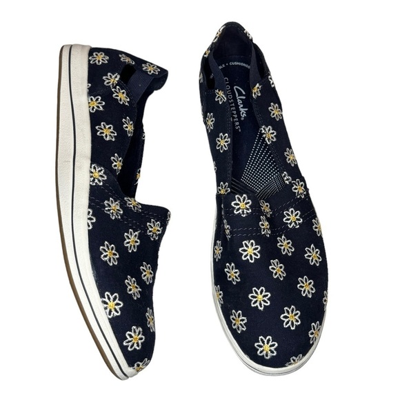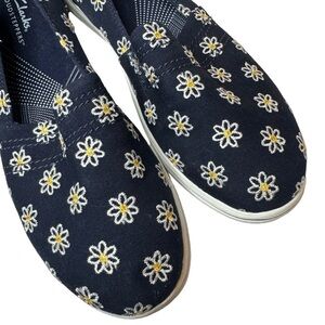 NEW Clarks Breeze Step Navy Daisy Canvas Loafer Slip On sneaker Women 9.5 narrow