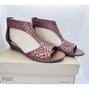 Clarks Collection Perforated Leather Wedges Abigail Ruby | Size 8.5 M | New in Box
