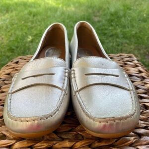 NEW Clarks Doraville Nest Metallic Silver Leather Slip on Penny Loafer Driving Moccasin Shoes Womens size 10