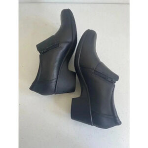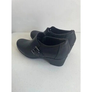NEW Clarks Genette Vista Shoes Black Leather Buckle Bootie Zipper Size 9.5