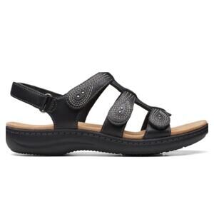 NEW Clarks Laurieann Vine Strappy Sport Sandals Black Leather Size 7M