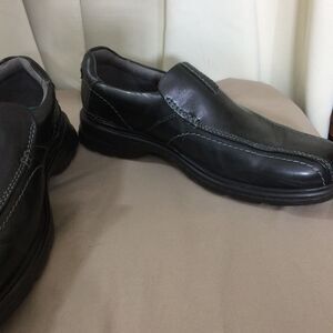 NEW Clarks Men’s Vanek Step Black Leather Slip On Loafers Memory Foam Size 9