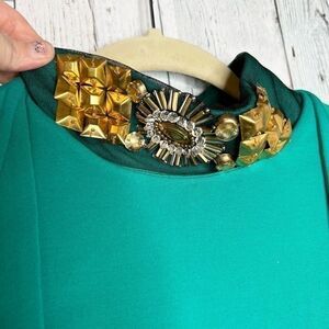 NEW Class Roberto Cavalli green embellished mock neck peplum knit dress size 10
