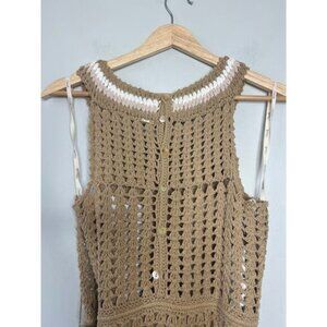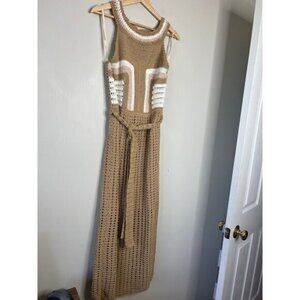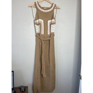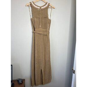Cleobella Kiana Crochet Fitted Slit Button Tie Waist Midi Dress Beige. New without tag!