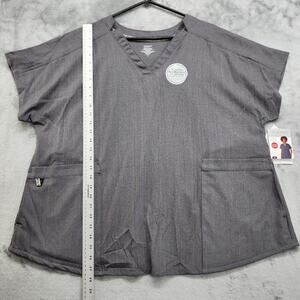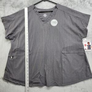 NEW ClimateRight by Cuddl Duds Scrub Top Womens 2X Gray Short Sleeve 6-Pocket